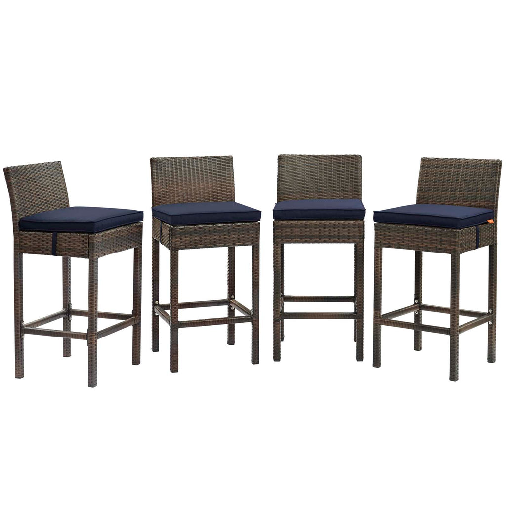 Conduit Outdoor Patio Wicker Rattan Bar Stool Set of 4 by Lefancy